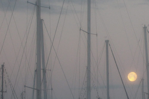 moon amid masts